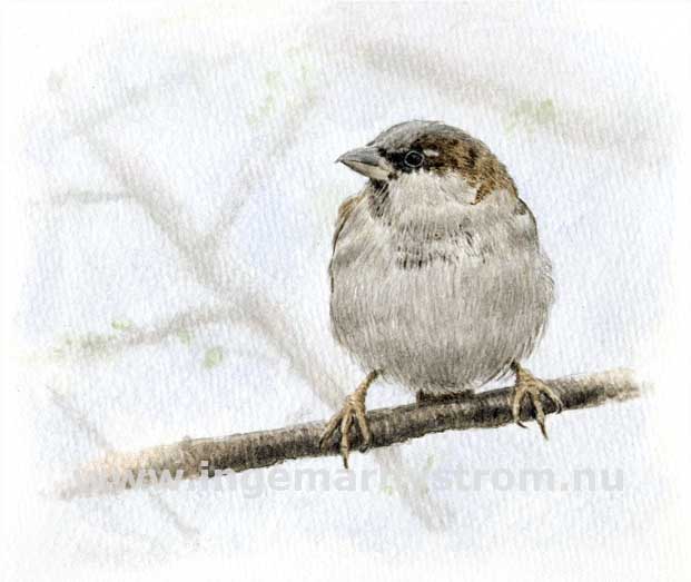 Par/Couples | Blyerts och akvarell/Pencil and Watercolor Såld/Sold | Fåglar MENY Gicleé Fine Art utskriven på Epson Hot Press Natural 220 g A3-storlek (29,7 cm × 42 cm) 800 kr. Upplaga 20 st numrerad och signerad. Porto/packning/kuvert tillkommer med 150 kr. ![]() Vårsparv/Spring Sparrow | Blyerts och akvarell/Pencil and Watercolor 15 x 15 cm | Pris med passerpartou 2 500 kr | Fåglar MENY Gråsparv/House Sparrow | Passer domesticus |